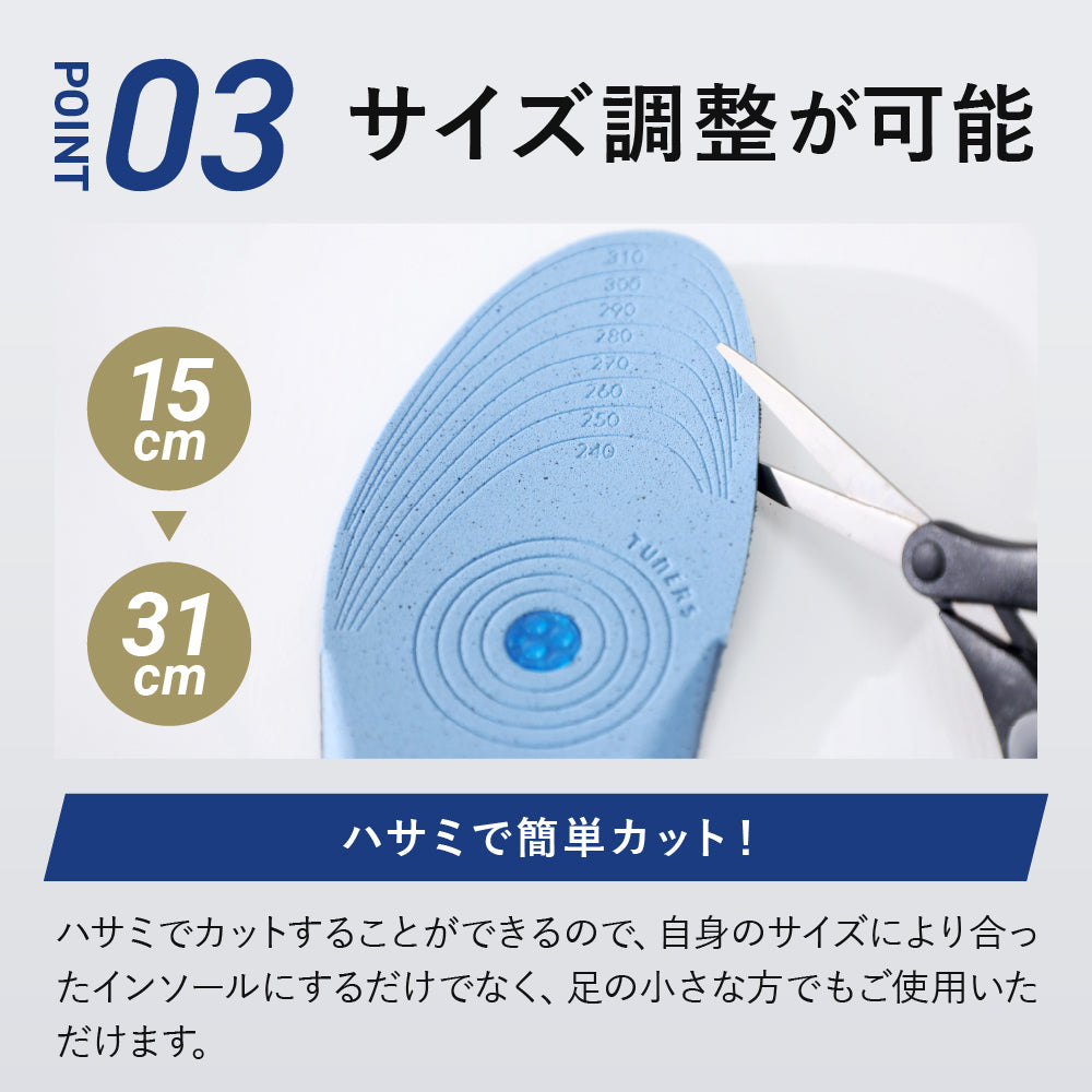 4点に配置されたジェルが衝撃を吸収し、スポーツ時に最適なインソールです。