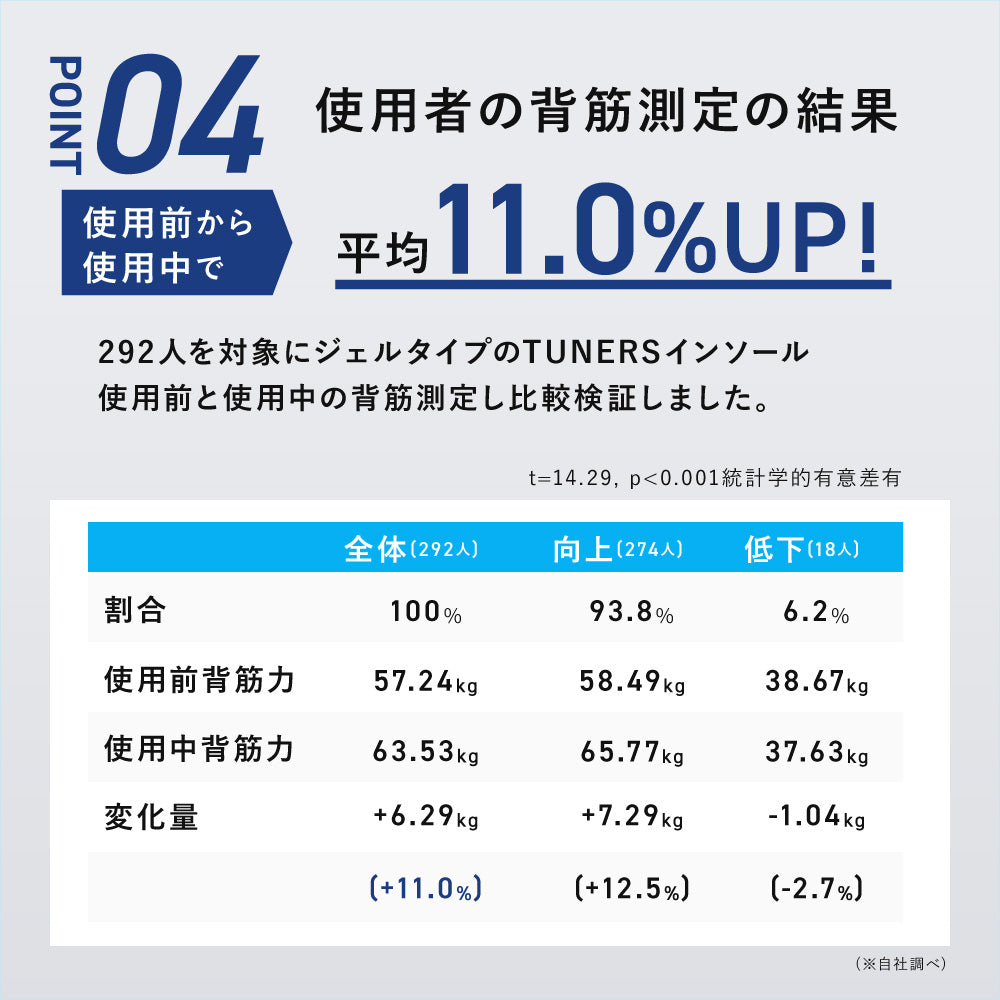 TUNERSインソールで歩行時の安定感を感じていただき、日常生活のお役に立てていることを大変嬉しく思います。