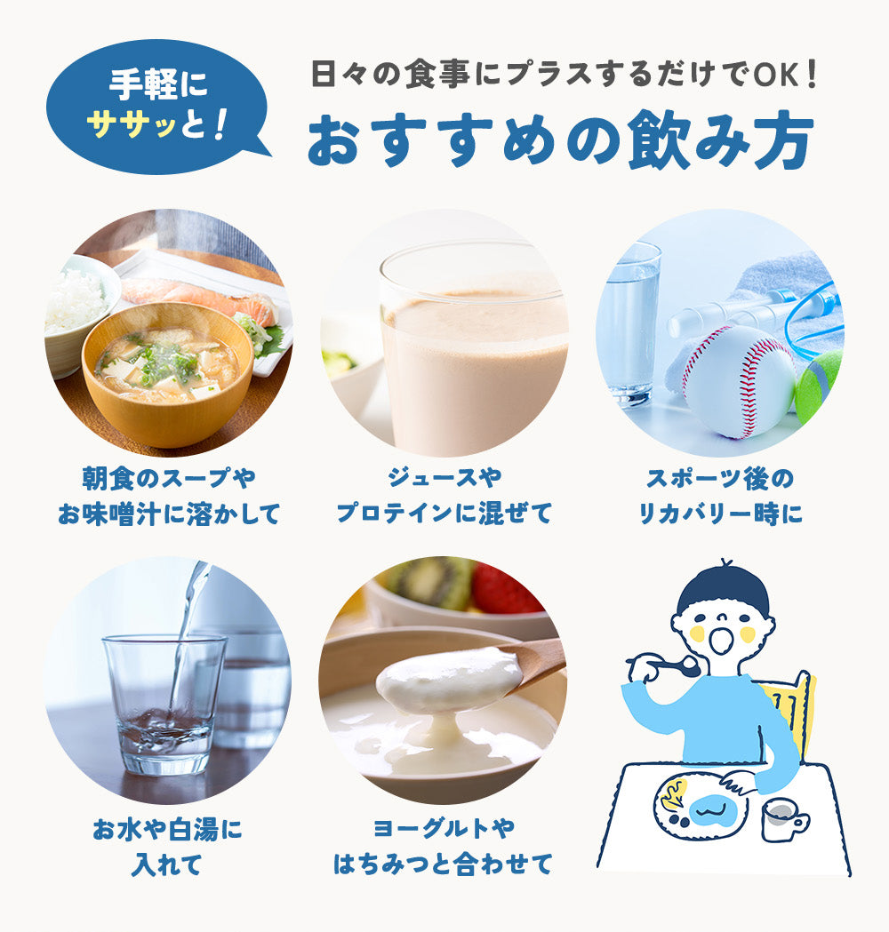 適量の水や白湯に溶かしてもお飲みいただけます。